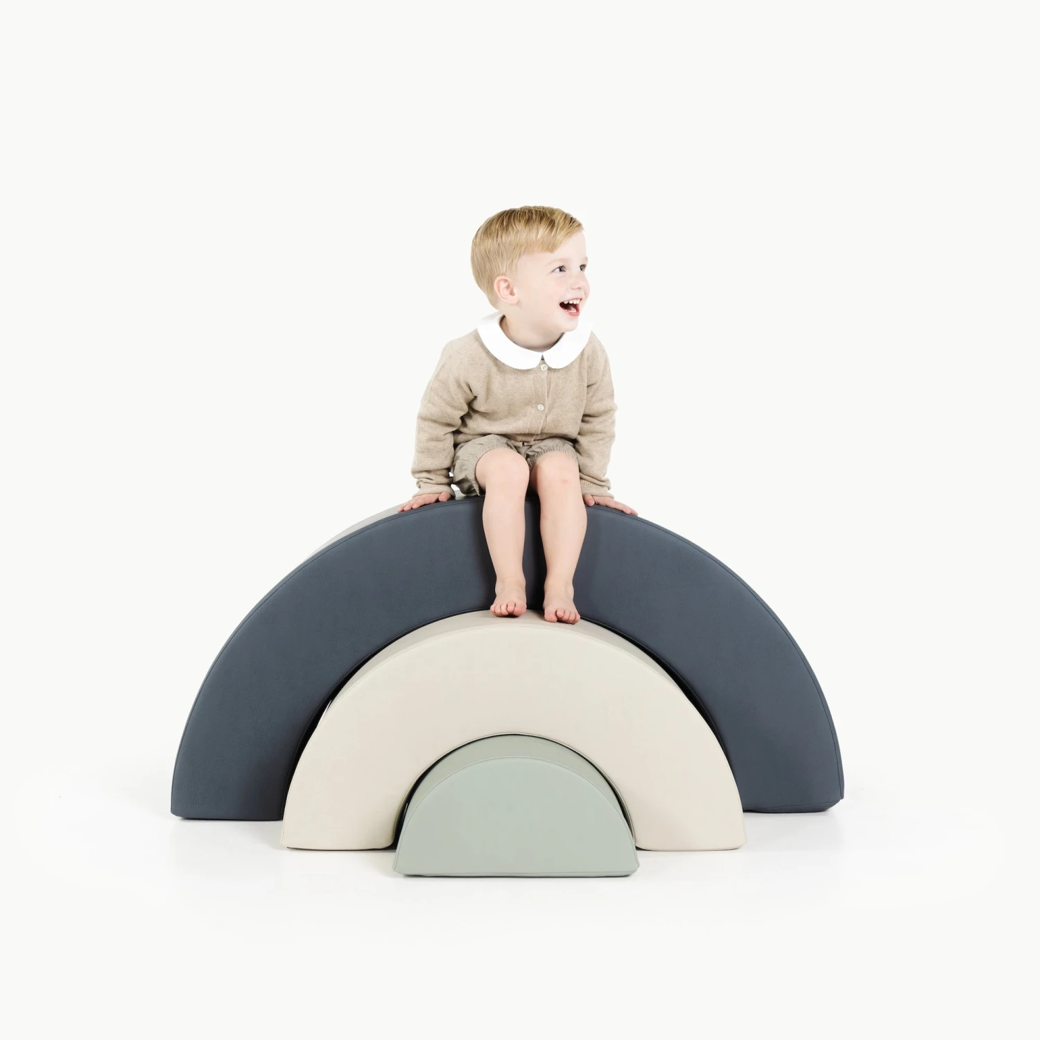 The Arc Playset by Gathre is prefect for active play! With a seesaw, swing, stomp, and slide, this playset can be enjoyed indoors. Your new best friend for rainy days, perfect for burning off excess energy.