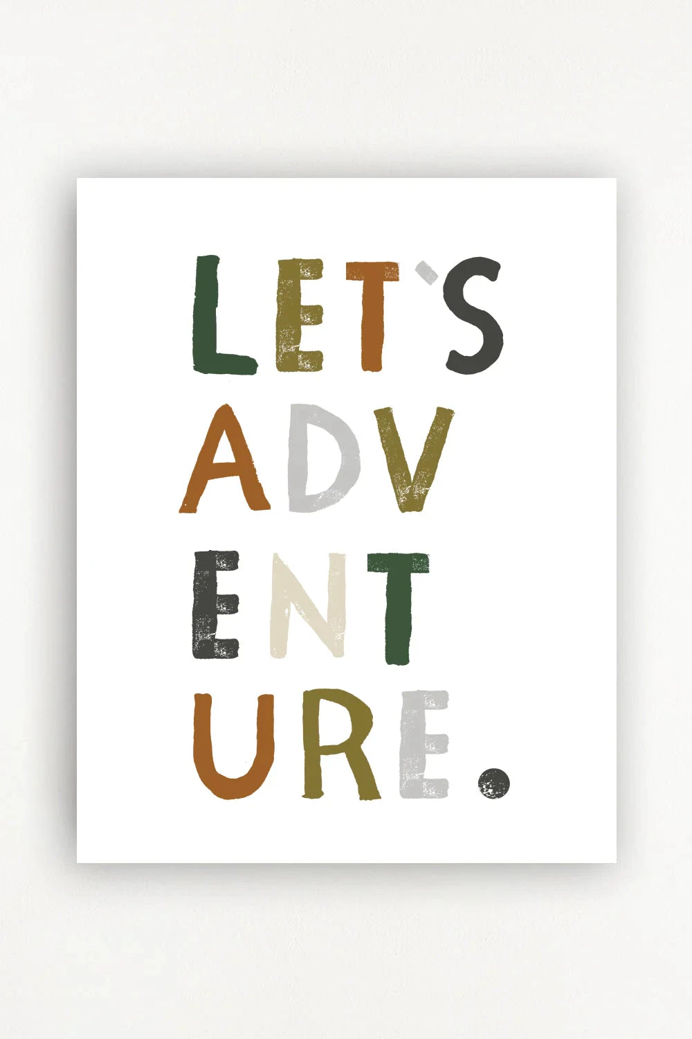 - one 11×14″ Let’s Adventure Art Print, unframed