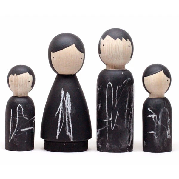 Hand-carved from Urapan wood on an electric lathe, these Modern Artists II wooden peg dolls from Goose Grease are created by Colombian craftspeople and painted with USA-made, non-toxic, water-based colors.
