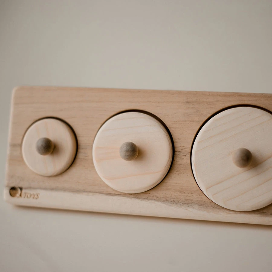 This QToys wooden toy is designed to teach baby to distinguish between different sizes of the same shape. Made of high-quality wood, this puzzle looks great in any nursery or playroom.