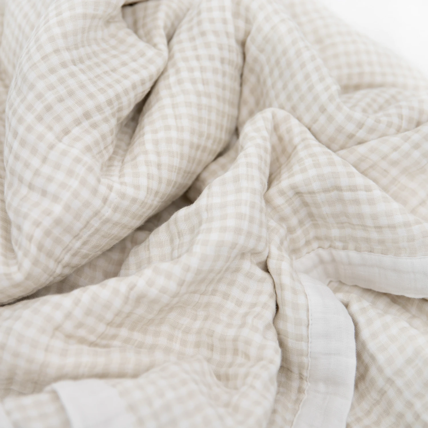 Cotton Muslin Quilted Throw – Tan Gingham