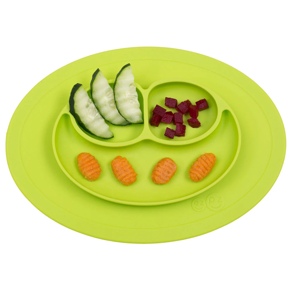 Like all of EZPZ’s products, the Mini Mat is an all-in-one placemat + plate that suctions to the table and fits most high chair trays. The mat is made from 100% food-grade silicone that is BPA, BPS, PVC, latex and phthalate free. Designed for infants / toddlers 4+ months.