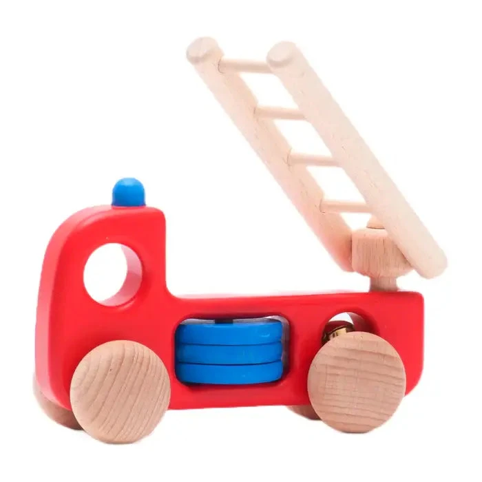 Little firefighters can race to the rescue with this bright red wooden fire engine! Expertly crafted from sustainably harvested hardwoods, it features a golden bell, a sturdy wooden ladder, and a classic design for endless pretend play. Finished with EU-certified non-toxic paints, this toy is safe, durable, and ready for action.