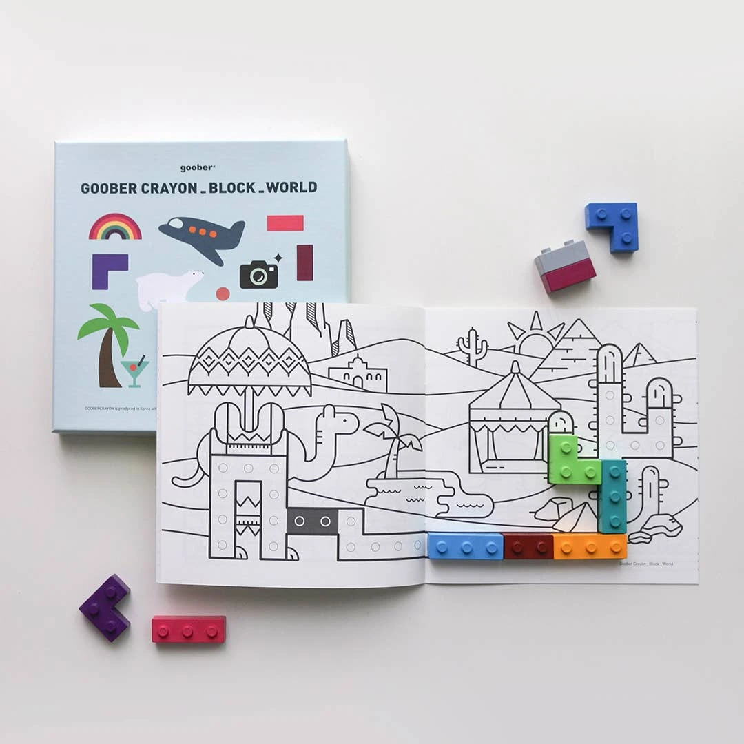 These 14 crayon blocks can interlock as puzzles and come with a super fun world coloring book.