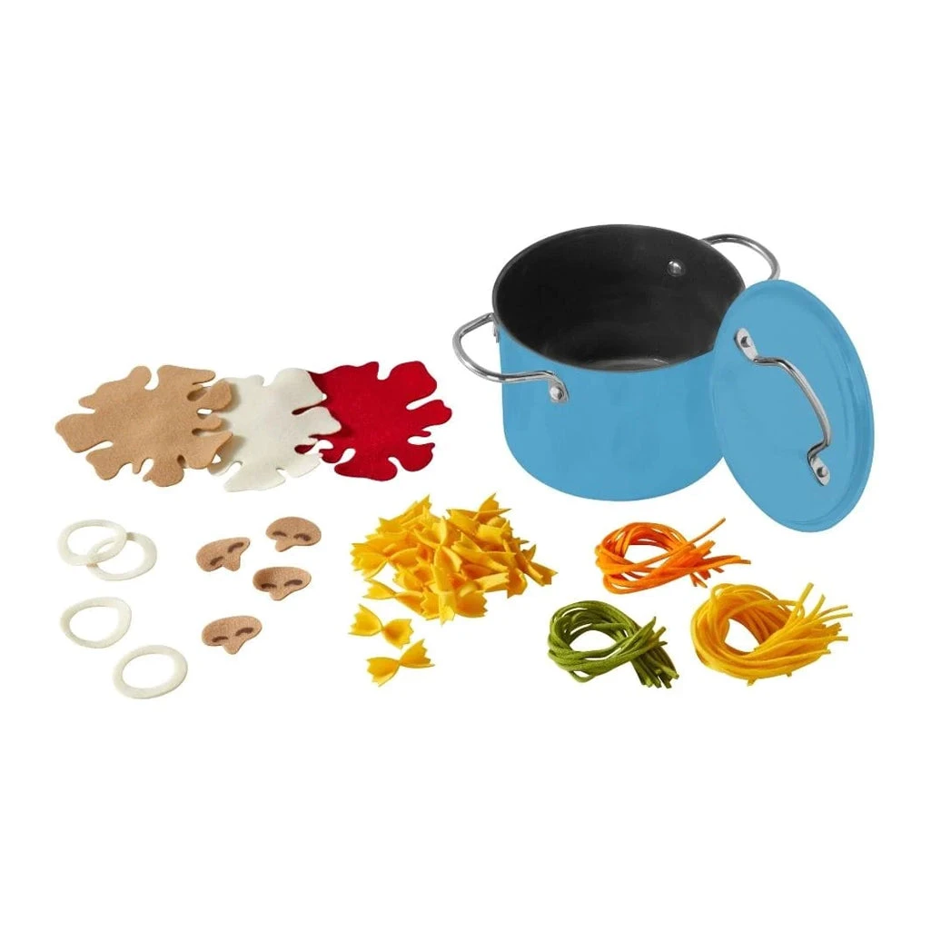 This adorable HABA pasta set is perfect for the little chef. It includes bowtie noodles, three different colors of linguine and all the sauce and toppings you could want. A great addition to your pretend play kitchen.