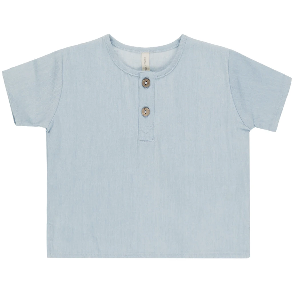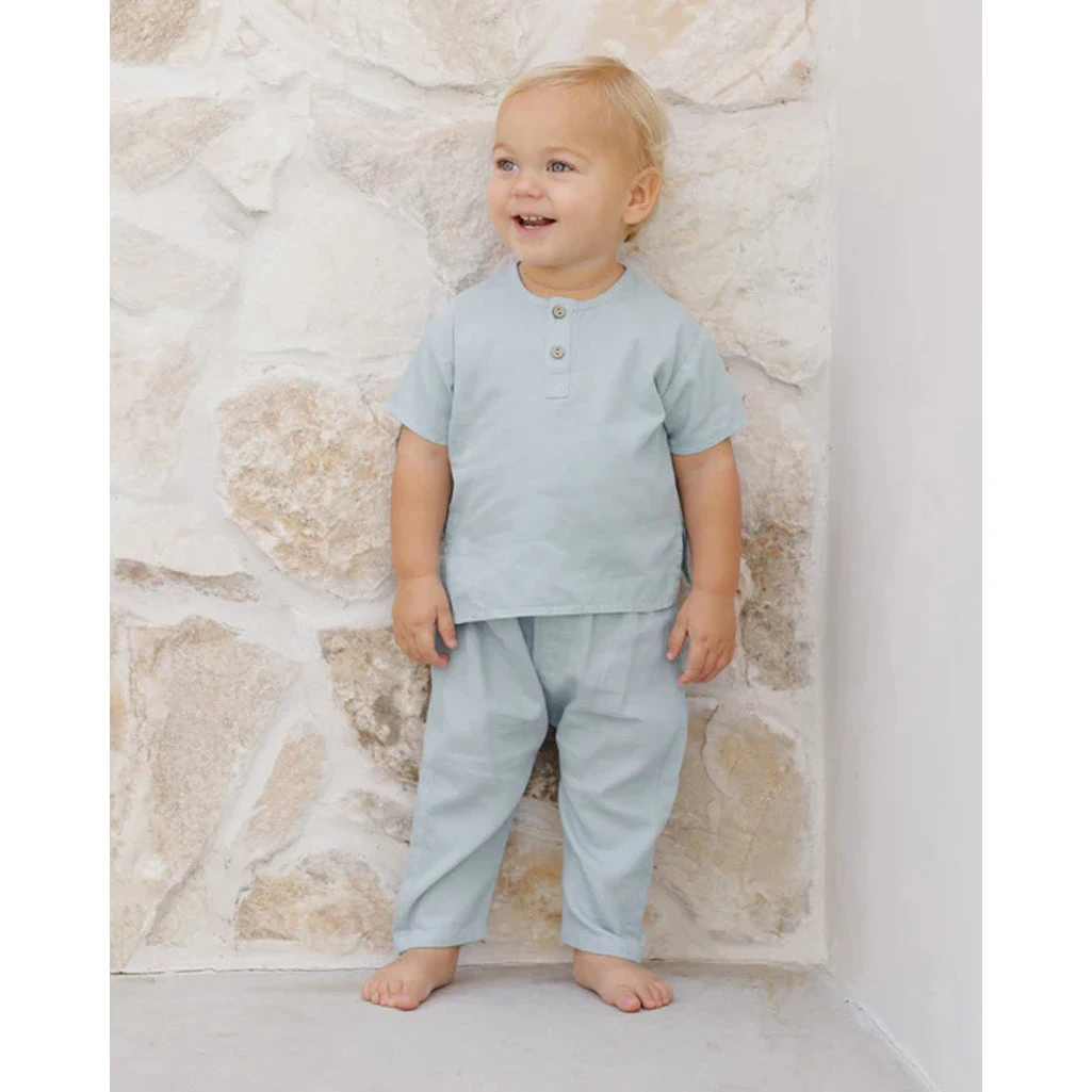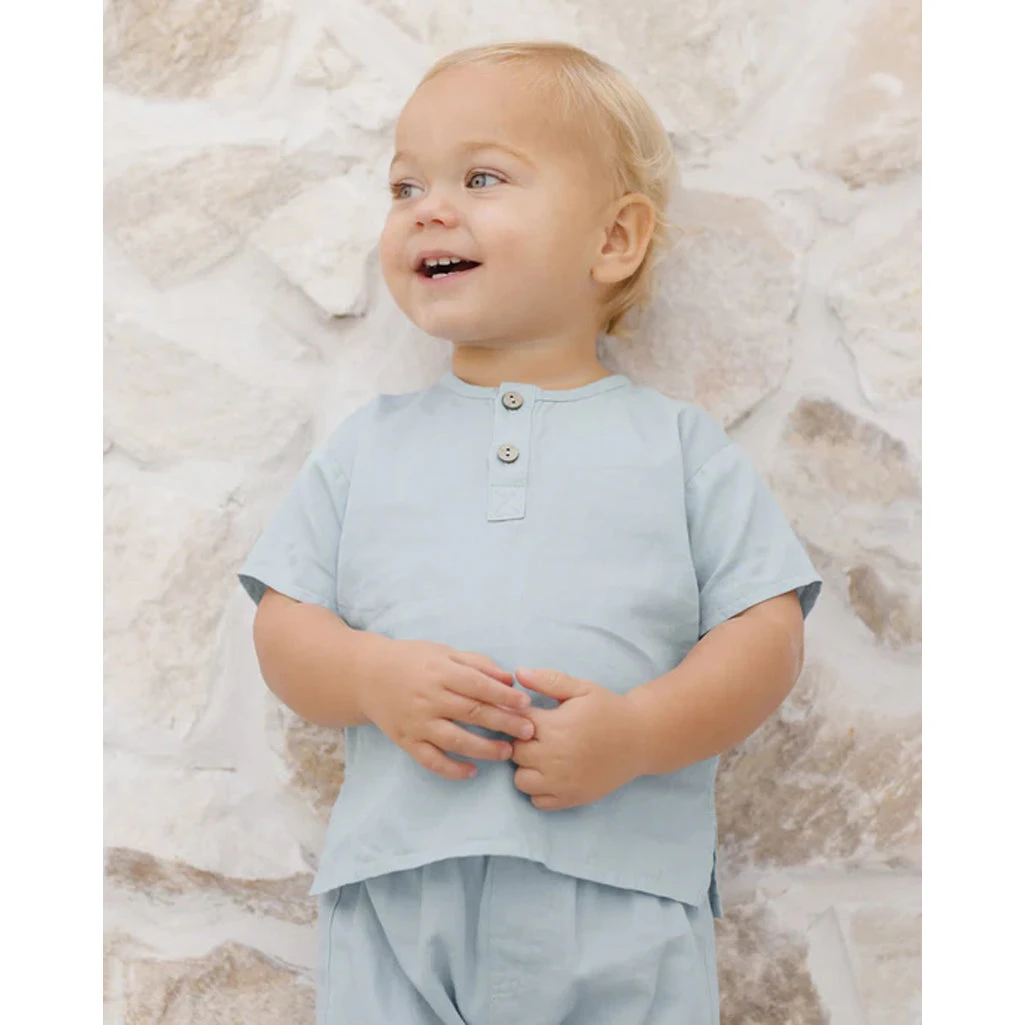The Henry Top is a lightweight, boxy-fit gauze shirt designed for effortless style and comfort. Featuring a summary-front closure, this breathable top pairs perfectly with the Chambray Pant for a timeless, summery look.