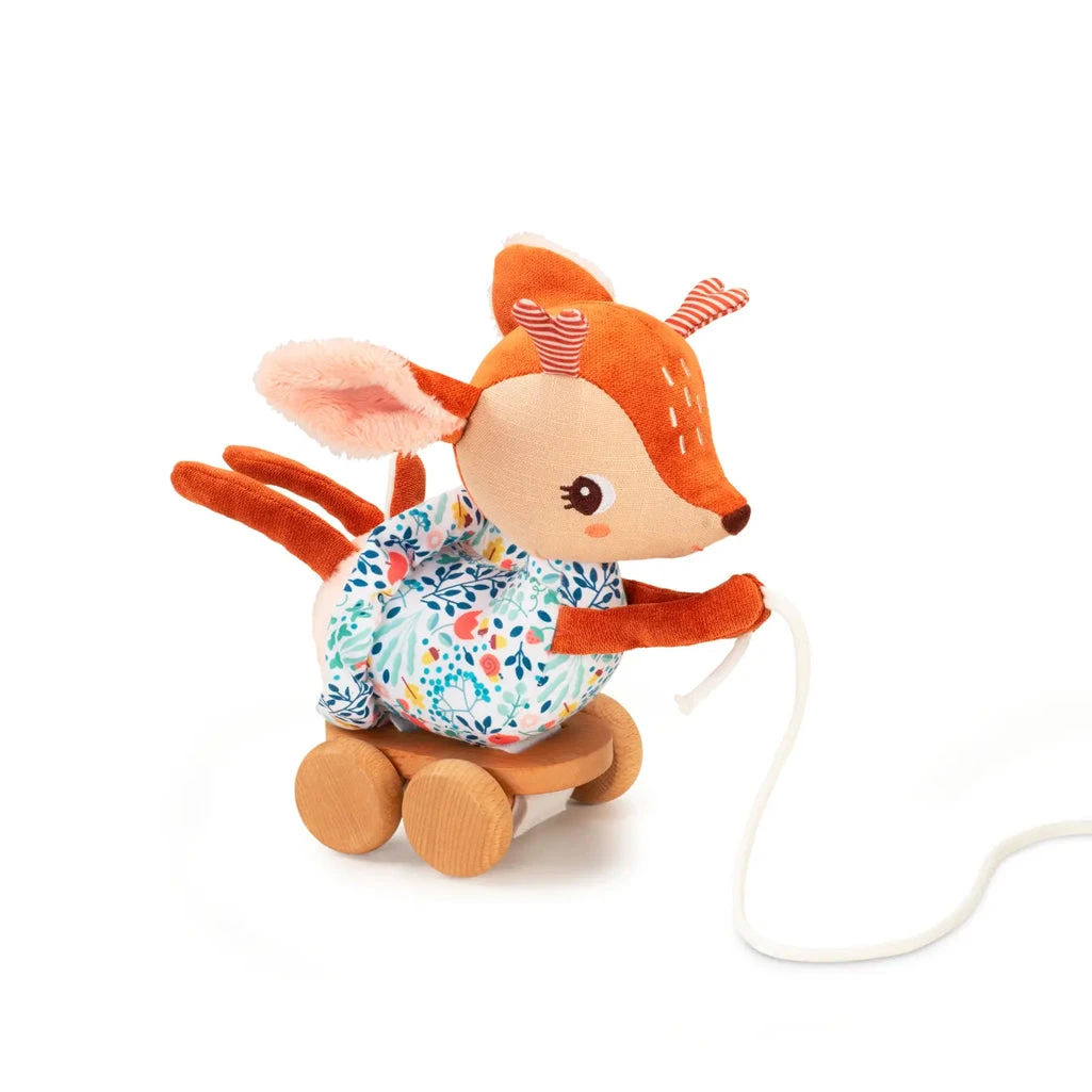 Take those first steps with confidence, thanks to Stella the fawn! This pull-along cuddle companion will ease any fears and encourage independent walking. Say goodbye to scary steps and hello to playful adventures!