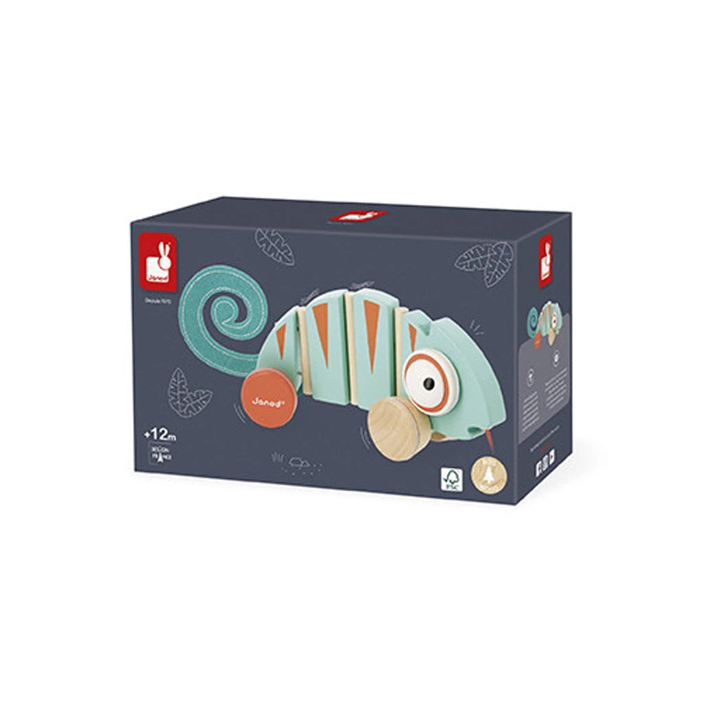 Take a stroll with the Tropik Pull Along Chameleon! This colorful wooden toy rolls its eyes as it walks, capturing your child’s attention and developing their motor skills. Made of FSCTM-certified wood with water-based paint, it’s perfect for kids aged 12 months and up. Join the wild and playful tropics today!