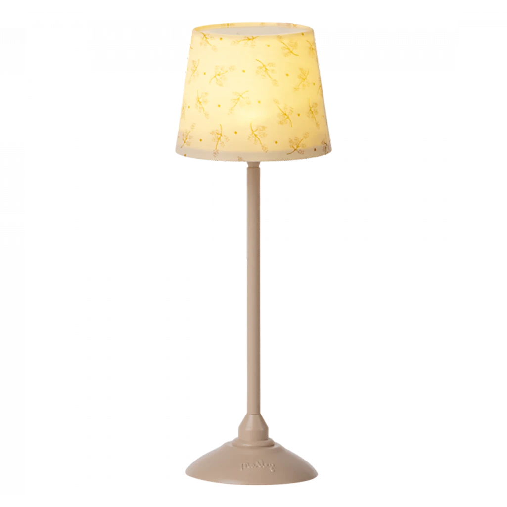 This Miniature Floor Lamp would be a beautiful addition to any Maileg dollhouse. Featuring a solid painted base and stem with a classic patterned shade – It even lights up!