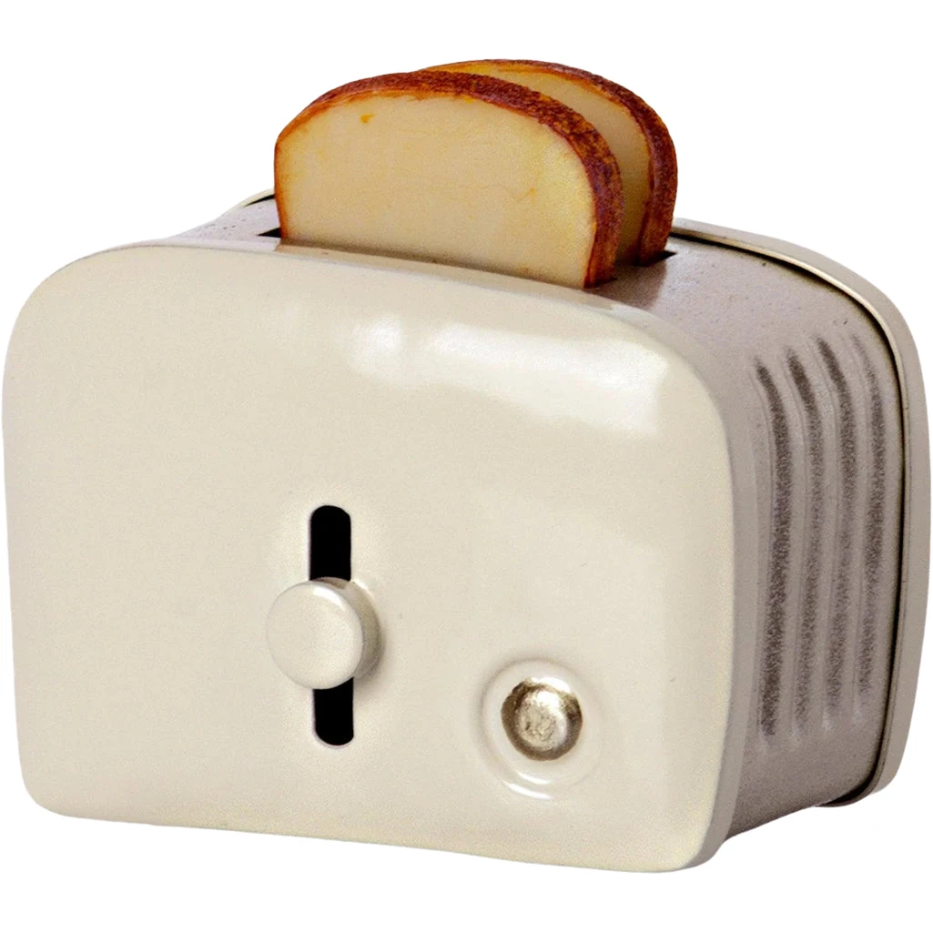 Add the perfect touch to your Maileg dollhouse with this vintage miniature toaster! Your kids will love imaginative play with this realistic dollhouse accessory. Complete with bread slices, this toaster will make your dollhouse feel like a real home. No Maileg house is complete without it! Order up!