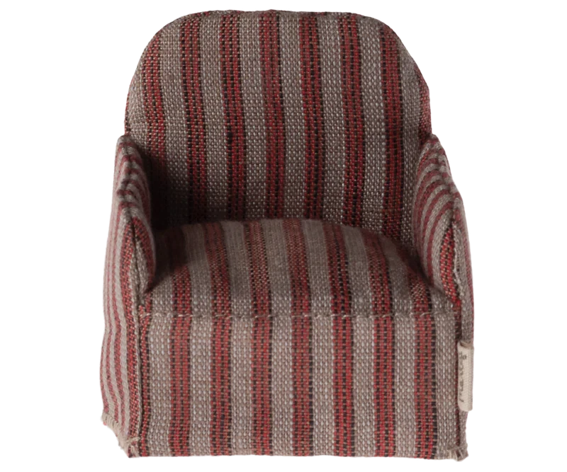 This Maileg Mouse Chair is just what was missing in your mouse living room. Featuring a beautiful soft linen fabric, this chair is perfect for your small Maileg friends to take a rest on!
