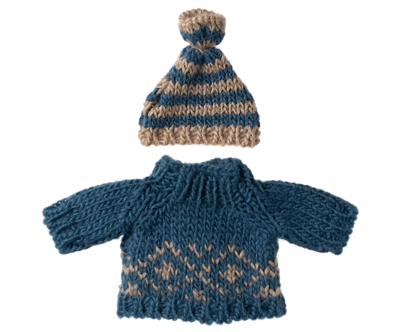 Stay cozy all winter long with our Sweater and Hat set! Made from soft knit material with a beautiful Scandinavian-inspired pattern, this set will keep your Maileg mice stylish and warm. Don’t forget the tiny hat to keep those ears warm too!