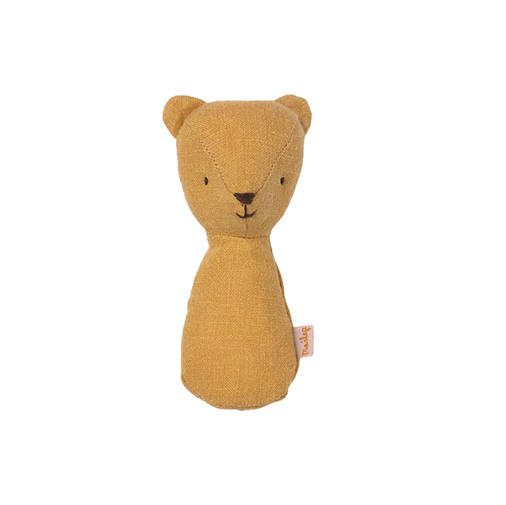 These Maileg Teddy Rattles have are the perfect size and fit for a baby’s hand. They have the sweetest rattling sound that is stimulating for little ones. These darling little Teddies make delightful gifts for newborns and new parents. These Teddy Rattles are made of soft linen which gives the classic Maileg vintage-style look.