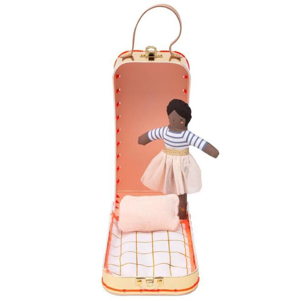 Take your favorite friends on endless adventures conveniently with this Mini Doll & Suitcase set by Meri Meri!