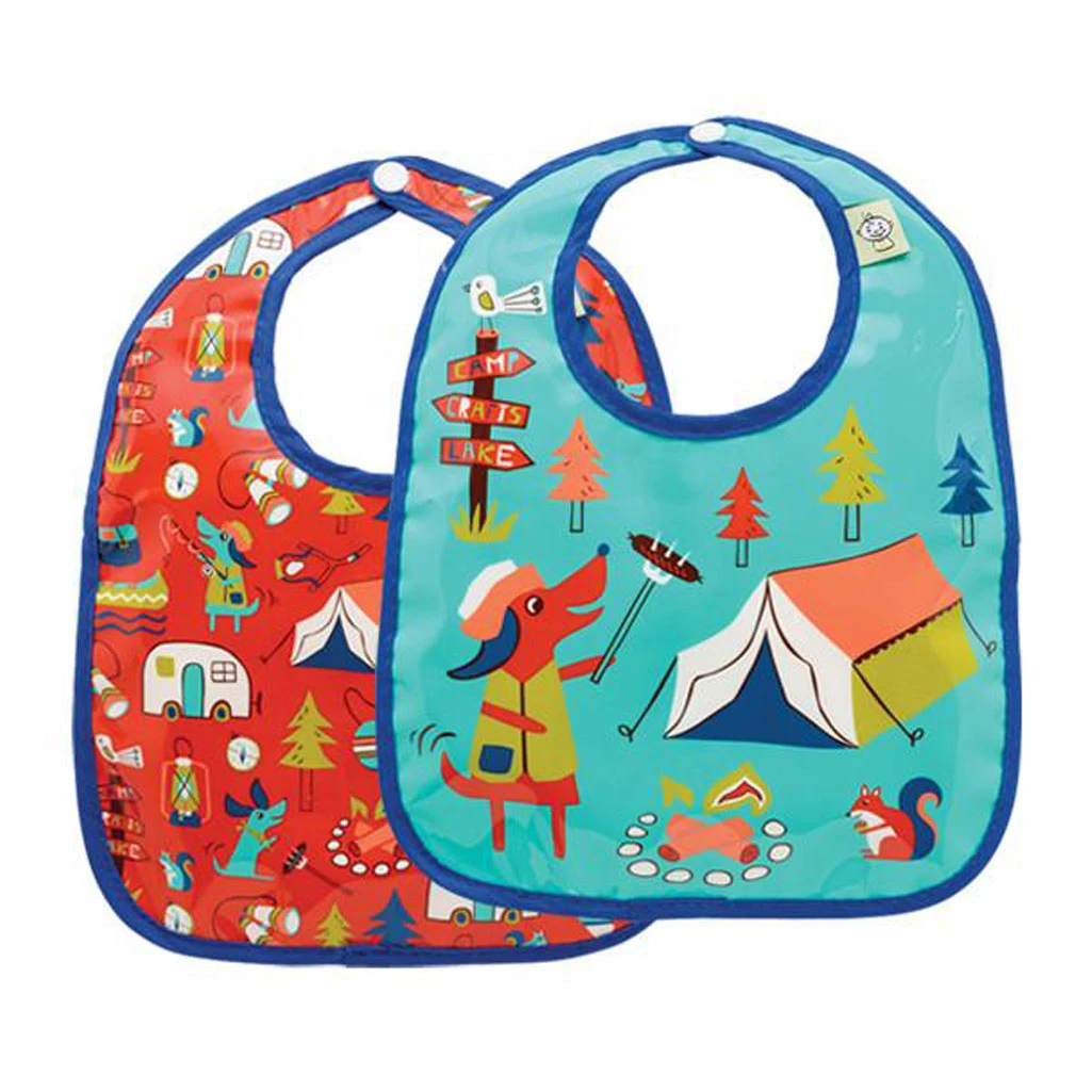 This two-piece go-anywhere mini-bib set features two different matching patterns. Simple snap closure, Sugarbooger’s durable mini bibs are thankfully machine washable.