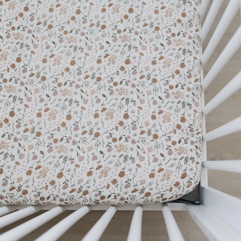Create a tranquil and sophisticated atmosphere in your baby’s nursery with our Meadow Floral Muslin Crib Sheet. Made from our unique fabric design, this sheet is not only gentle and airy, but also conveniently machine-washable and smoothly fits onto the crib mattress. The dainty floral print adds a touch of refinement to the nursery’s aesthetic, promoting a calm and nurturing environment for your little one to relax and enjoy.