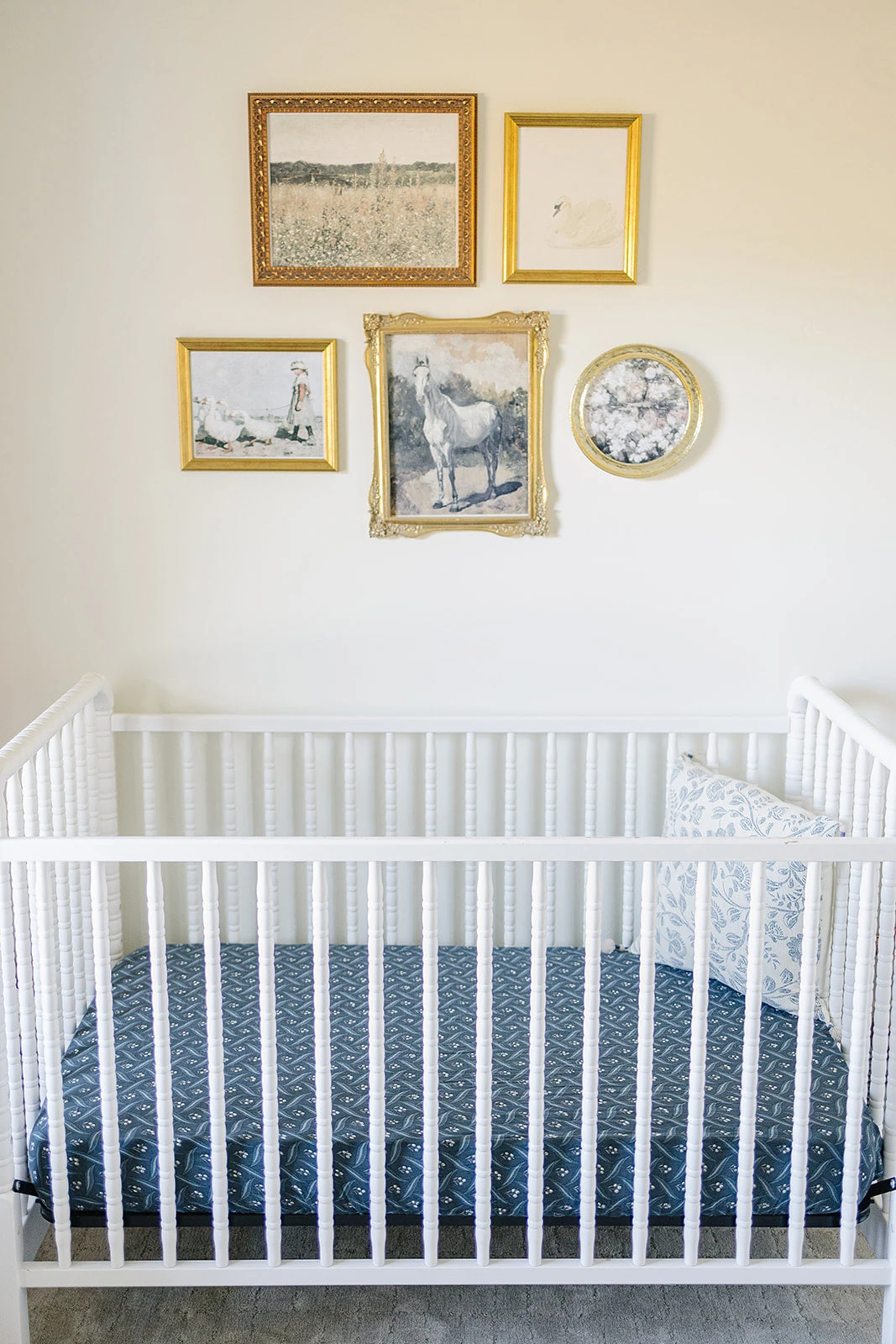 Our Navy Berry Muslin Crib Sheet will transform your baby’s crib into a luxurious sanctuary. Made from our exclusive, breathable muslin fabric, these baby crib sheets feature a delicate, elegant design to elevate the look of the nursery. Not only is it gentle on your baby’s delicate skin, but it’s also conveniently easy to wash and fits perfectly on a standard 52 x 28 inch crib mattress. Give your little one a dreamy bedtime with this enchanting baby crib sheet.