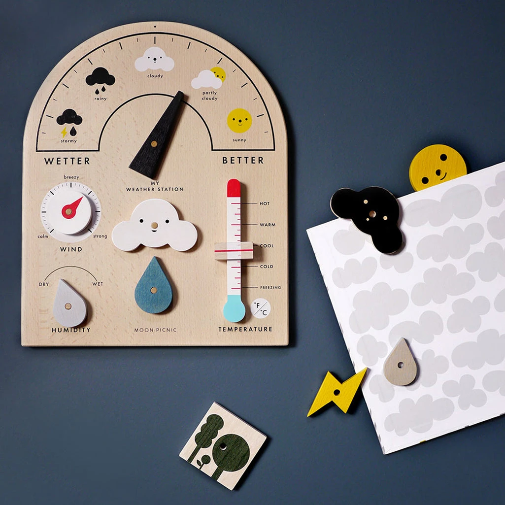 Keep your children engaged and aware of the world and environment around them with this Weather Station! This fun and educational interactive toy has 4 movable parts and 5 weather symbols to display so little meteorologists can report and forecast the weather.