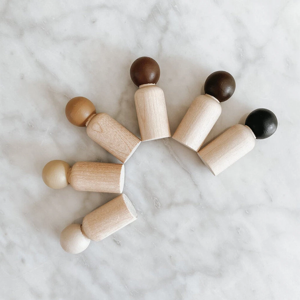 These simple peg dolls are Waldorf and Montessori inspired to teach children pretend play skills. Their open-ended concept means your child can play for hours, whether they are exploring communication, counting, family play and so much more. The multicultural set comes with 6 dolls of varying skin tones.