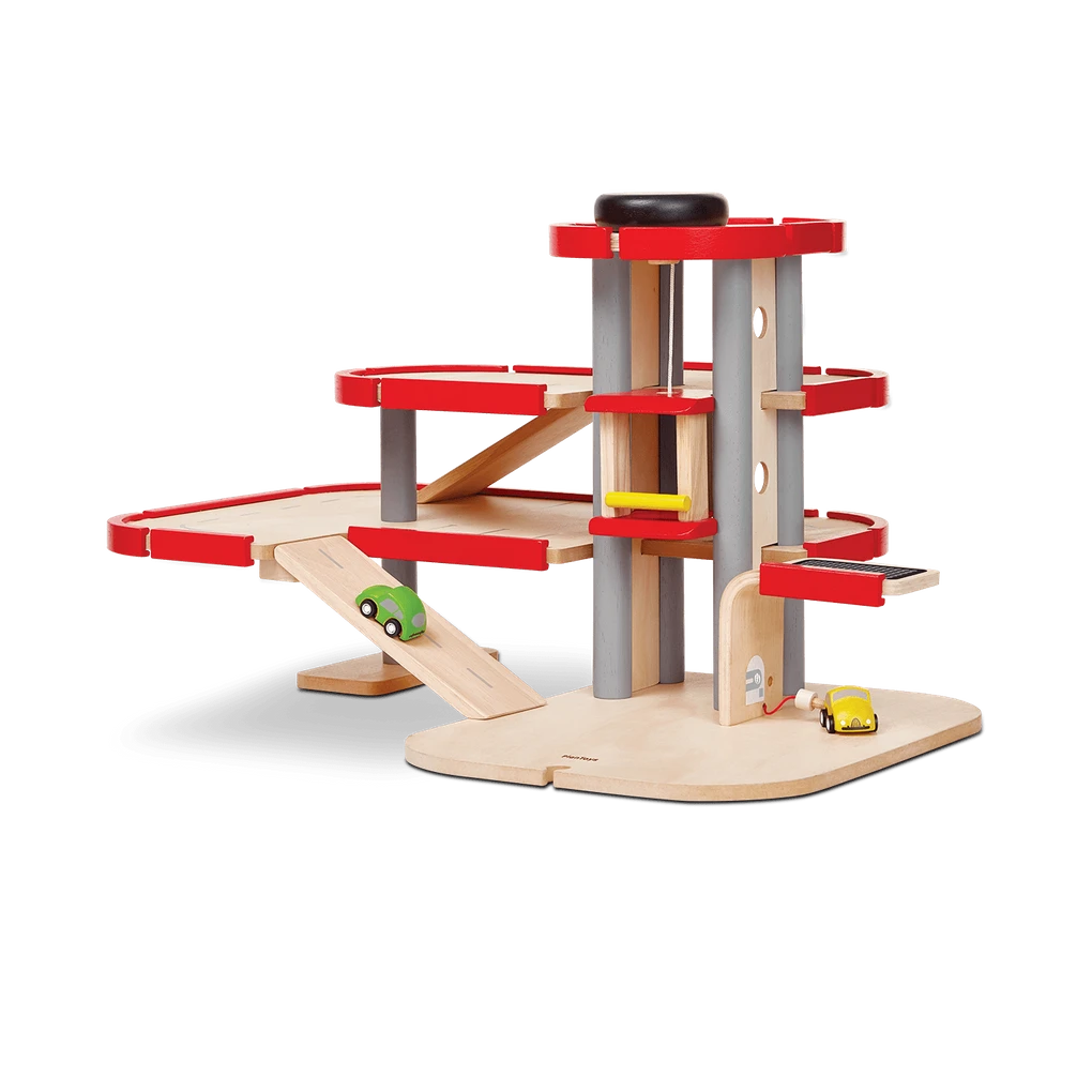 - The PlanToys Parking Garage comes with 1 parking garage and 2 cars