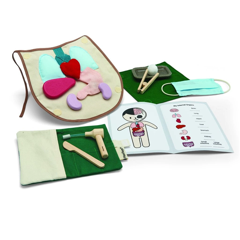 Encourage imaginative & role playing skills with the Surgeon Set! Explore the complex workings of the human body! Anything is possible with the great pretend play set by Plan Toys.