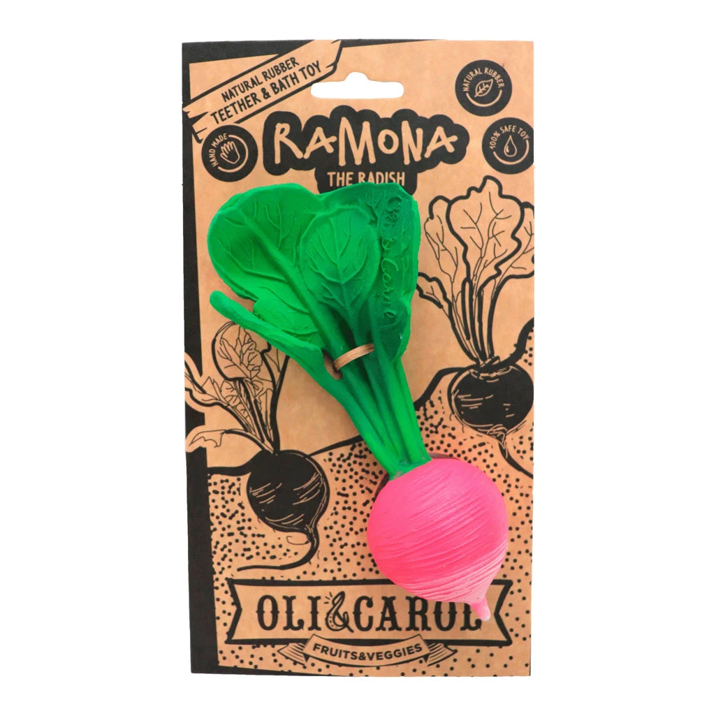 Romana the Radish is an ideal veggie-shaped baby buddy for teething, sensory play, and bath time fun while teaching the little one to “go green” early on! Kid-friendly and stress-free playtime!