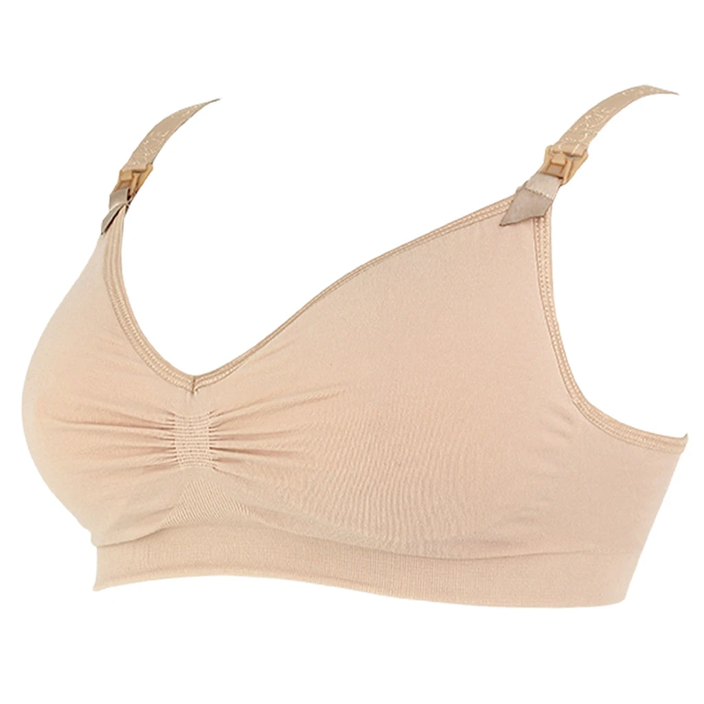 The Curve by CacheCoeur Seamless Padded Maternity and Nursing Bra provides maximum comfort and total support for everyday breastfeeding and nursing at-home and on-the-go. Our super soft and luxurious viscose bamboo fabric is naturally hypoallergenic, breathable and provides continuous fit to your changing body. Easy to size yourself in S to XXL and two colors offered in Nude and Black, all Curve by CacheCoeur nursing bras have one-handed, quick-release nursing clips to make feeding convenient and fast. A full drop-away cup encourages skin-to-skin contact and padded cups are easily removable taking you from maternity to nursing. As part of our basics line, this bra is great for both everyday and sleep. All Curve by CacheCoeur products are Oeko-Tex tested and certified in accordance with Standard 100 requirements, ensuring our products are free from harmful chemicals and substances.