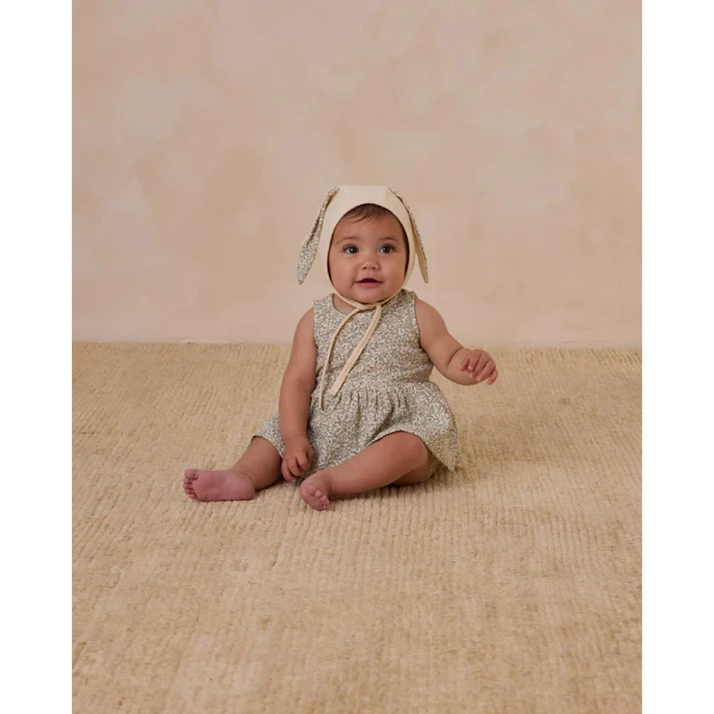 This adorable Skirted Tank Romper is crafted from breathable organic cotton gauze. Designed with a summary-back closure and bottom snaps for easy changes, it features a vintage-inspired floral print on a soft natural hue.