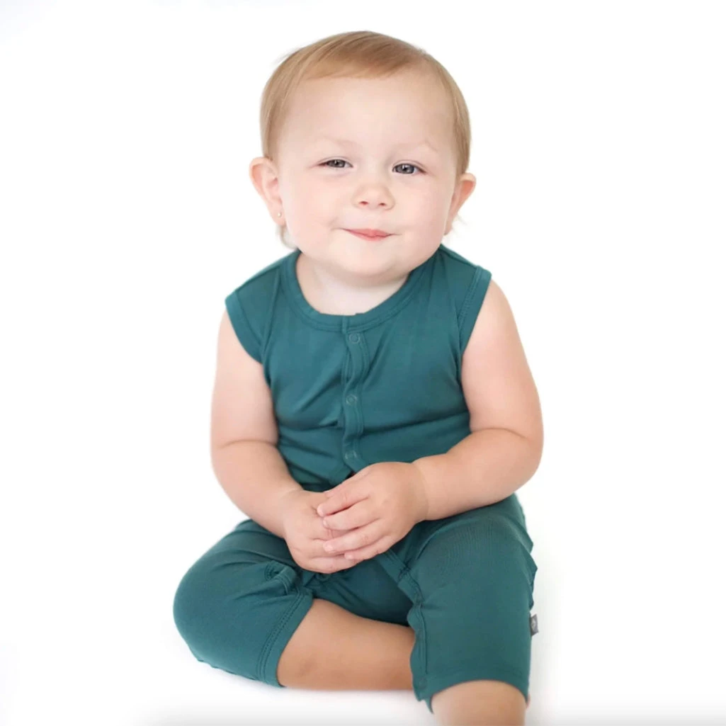 Crafted from our silky bamboo rayon, these zippered and sleeveless rompers from Kyte Baby are perfect for warmer days! Stretchy, vibrant material provides the versatility of a snug or loose fit while still providing comfort with capri-lenth legs. This romper also features a pocket for safe keeping on the left hip.
