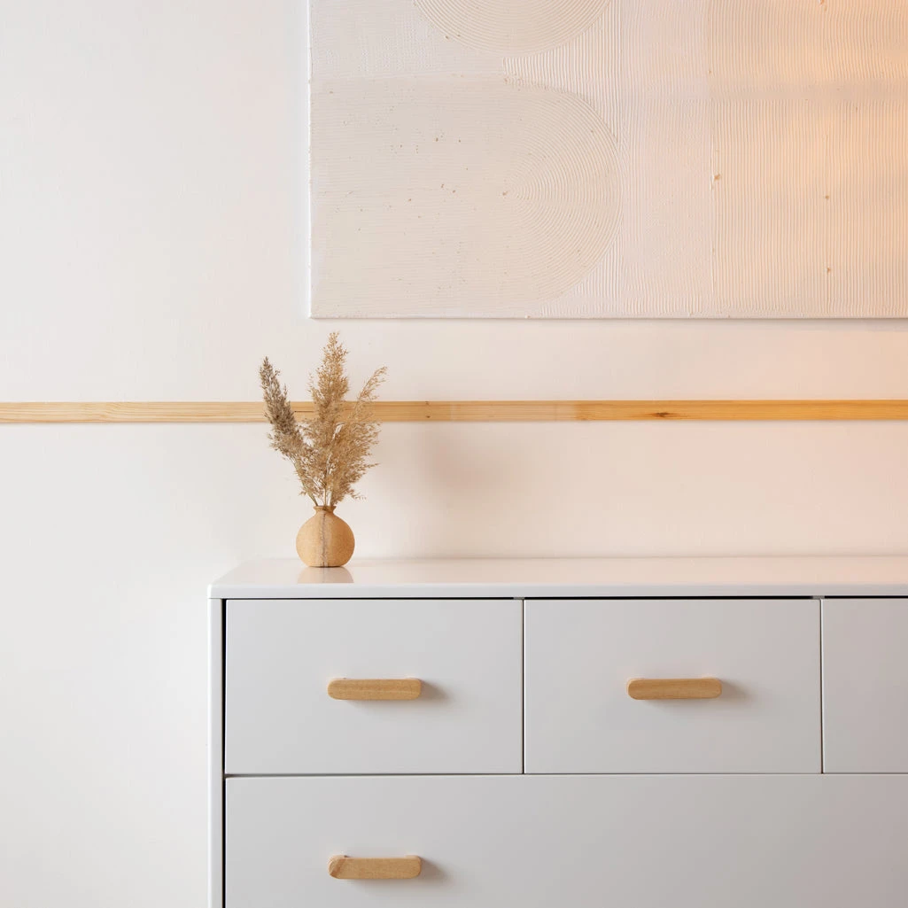 - Smooth painted finish, solid rubberwood legs & handles