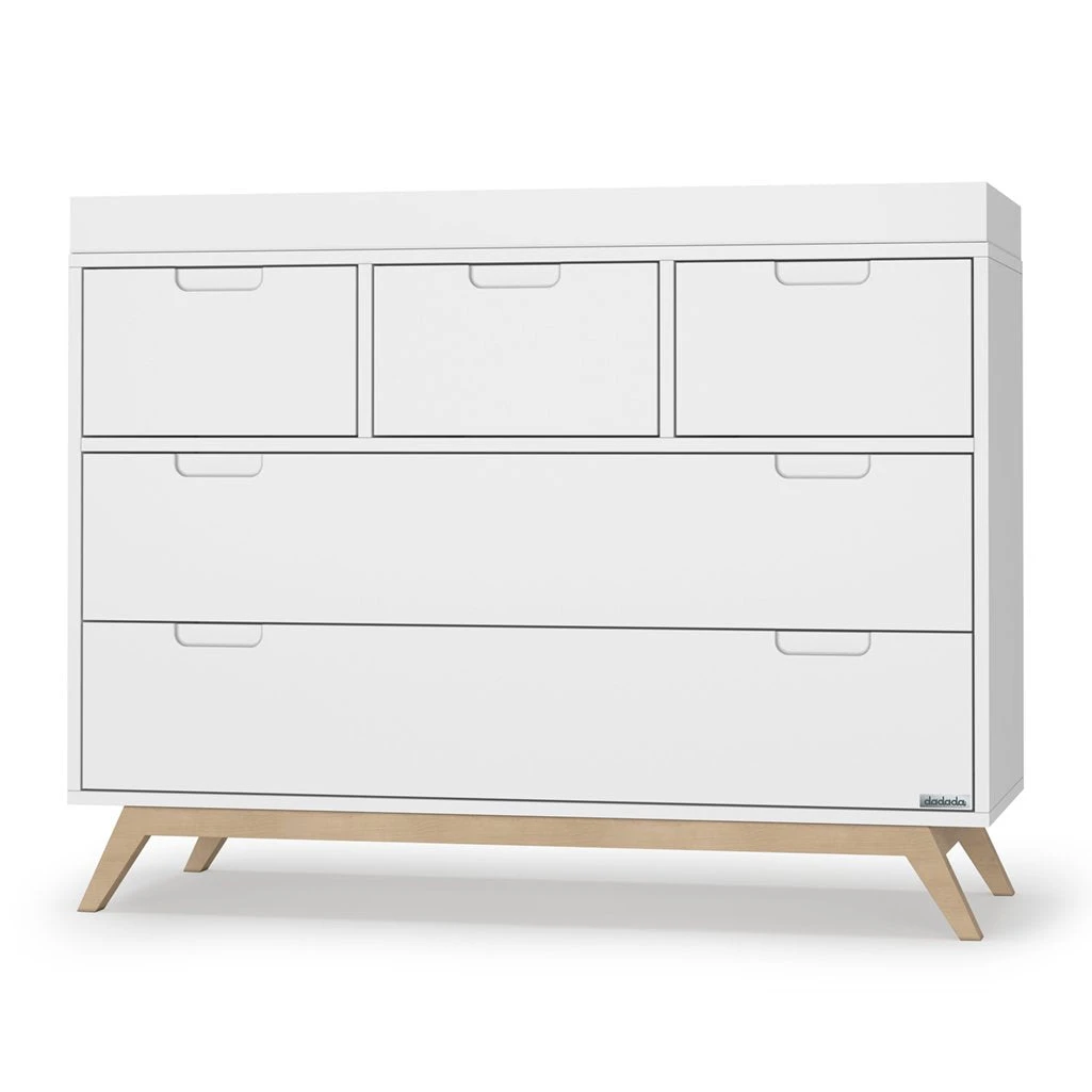 This Italian made dadada Soho 5-Drawer Dresser offers a classic, mid-century style to complement any room. Built to last, this dresser is safe, stable and strong with angled legs that will bring your child through babyhood, childhood and for years to come.