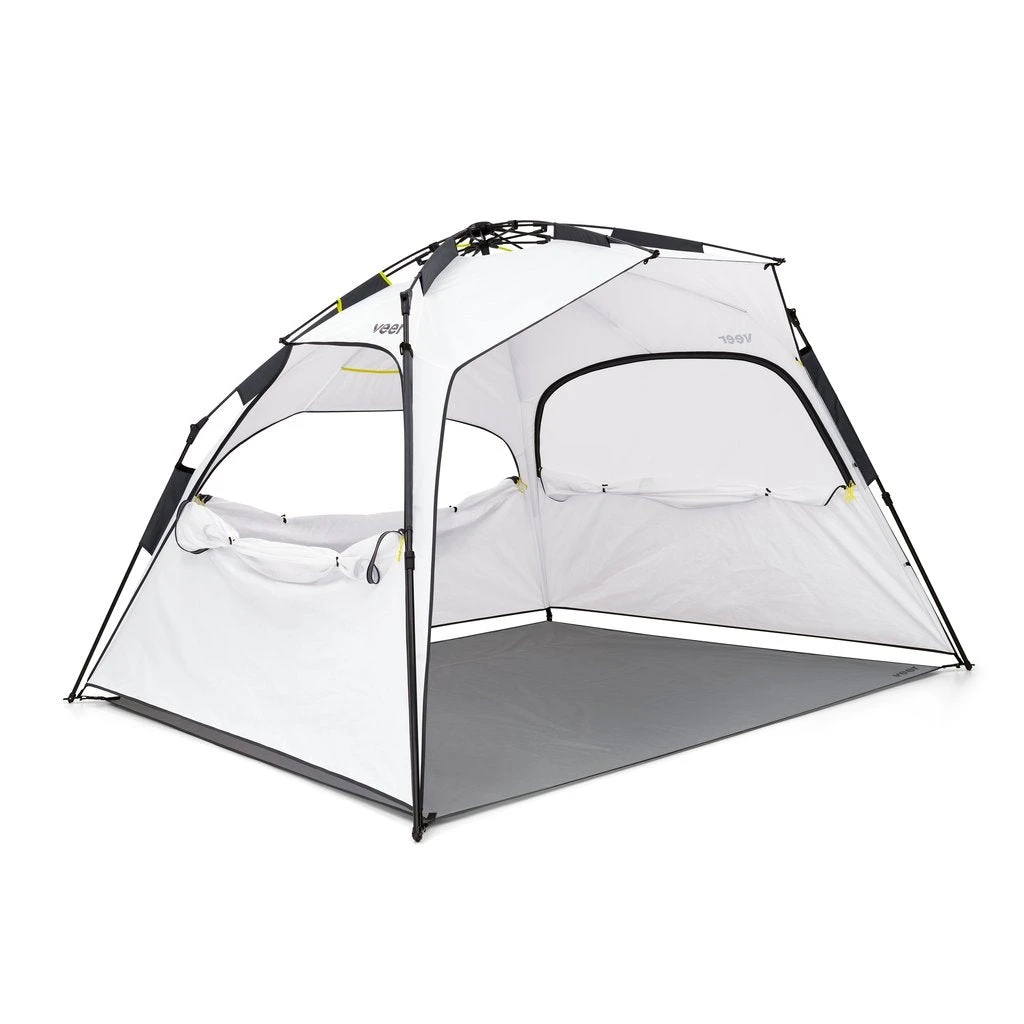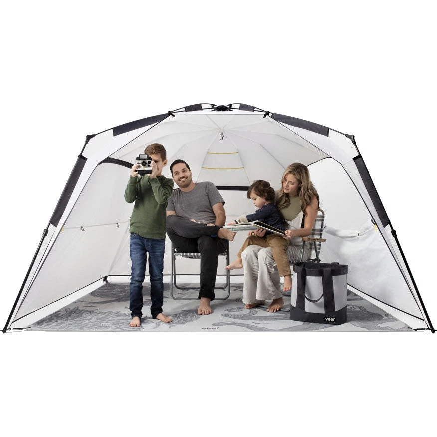 The Family Basecamp is a premium open-air shelter that pops into place with no assembly needed, and is sized to comfortably fit two adults, kids and unlimited accessories. A perfect companion to the Veer Basecamp Playard, it is family lodging for the heads of the family.