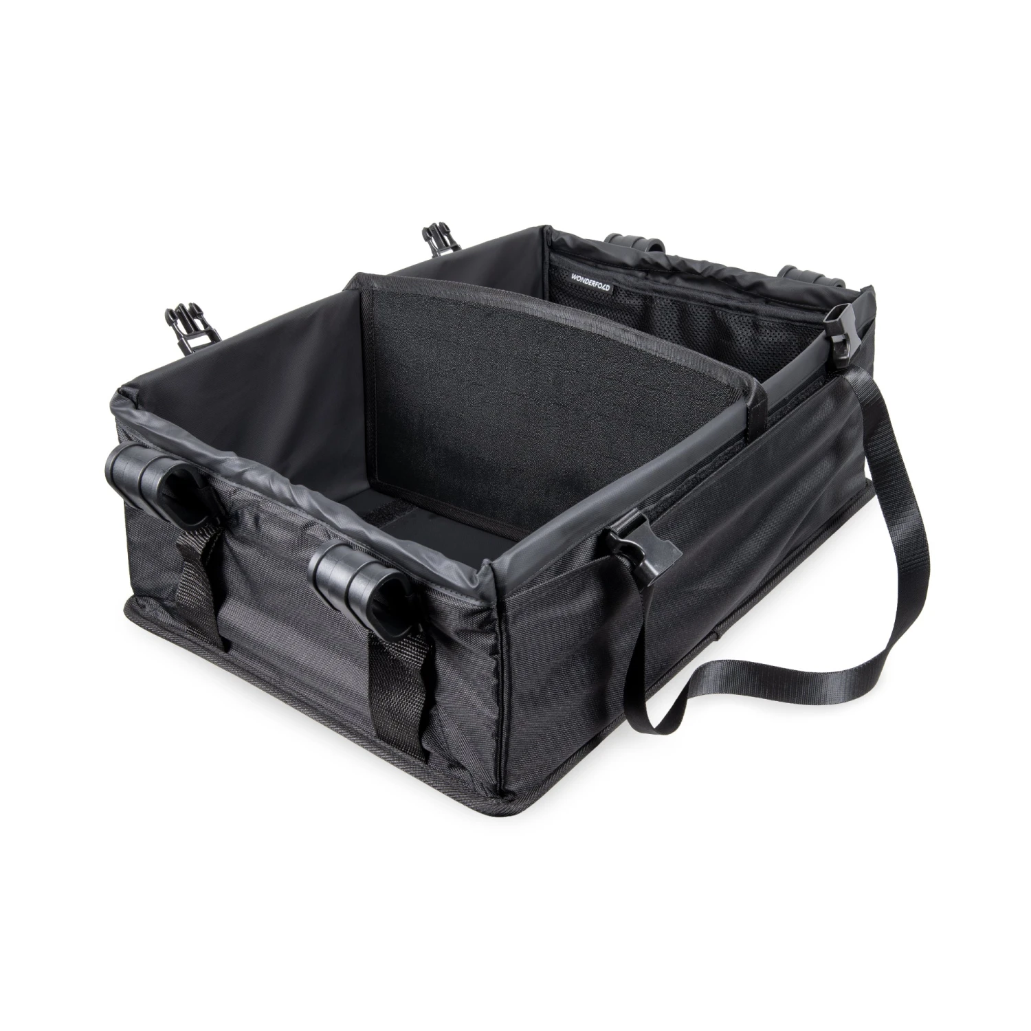No more juggling shopping carts and kids with the Wonderfold Collapsible Shopping Basket! Compatible with our W series wagons, this attachable basket transforms your stroller wagon into a shopping cart by replacing one of the seats with an extra compartment. The basket also features side pockets for added storage and easily collapses for convenient storage when not in use. It’s perfect for holding shopping necessities, medical equipment, bags, and more. However, please note that this basket is not recommended for use with babies.