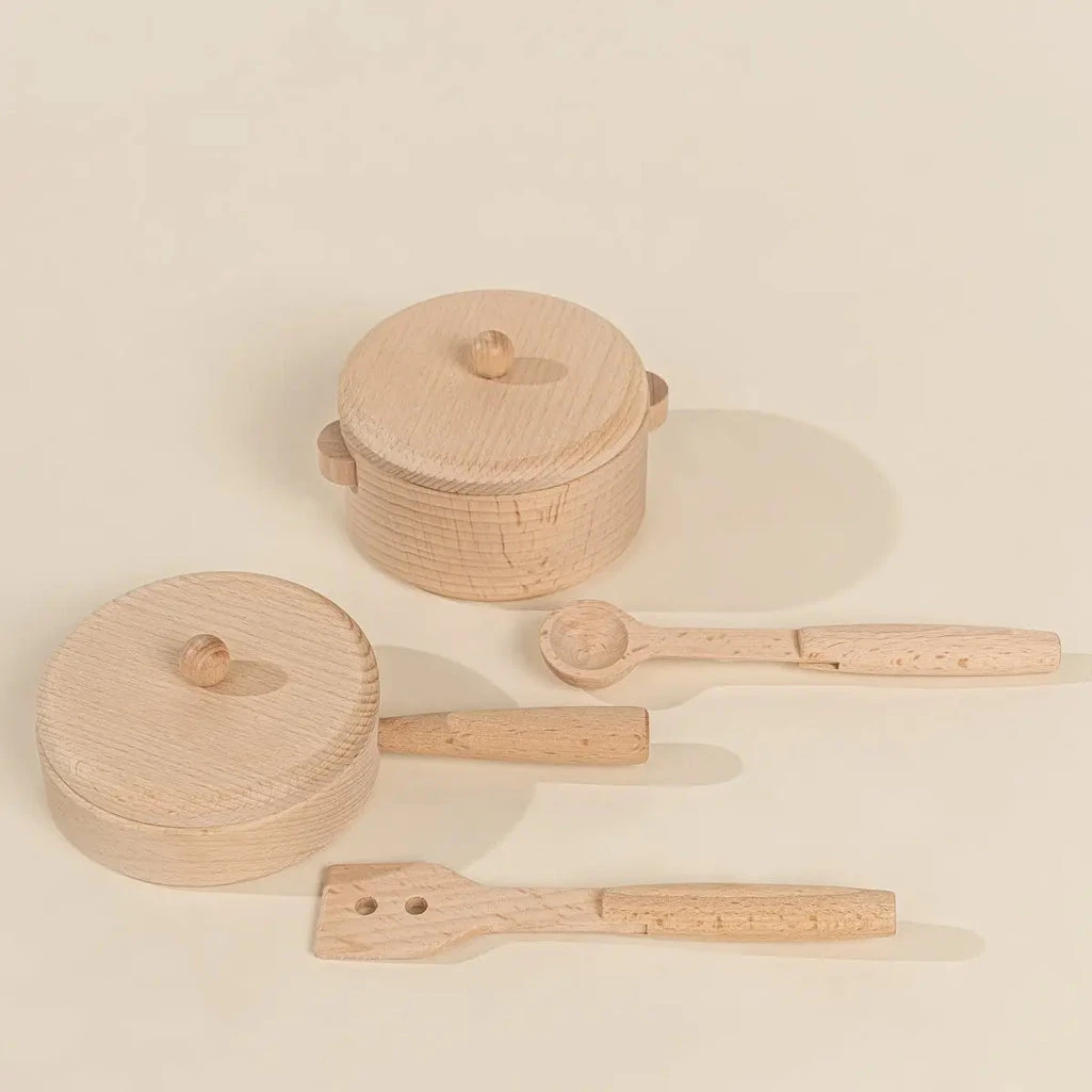 Unleash your little ones’ inner chef with our Wooden Pots and Pans Playset! This essential kit allows for creative culinary concoctions and introduces them to the world of gastronomy! Perfect for the Mini Wooden Play Kitchen and other wooden kitchen accessories. This Playset is perfect for children aged 3+.