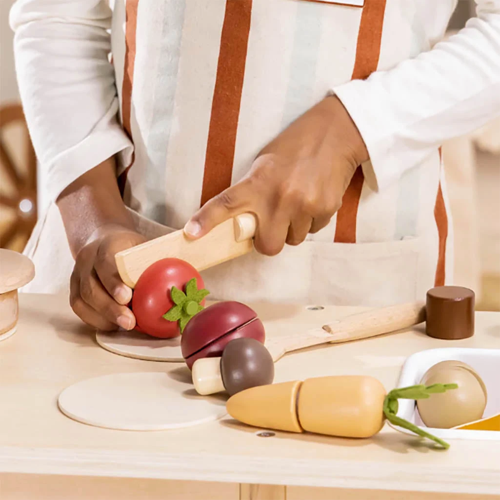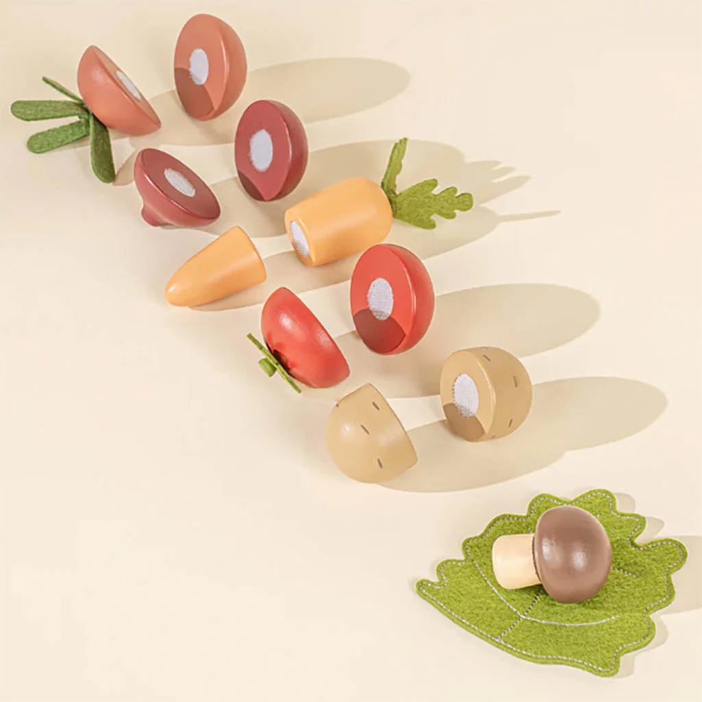 - Set includes: 1 Tomato, 1 Radish, 1 Carrot, 1 Potato, 1 Mushroom, 1 Lettuce Leaf, 1 Beet