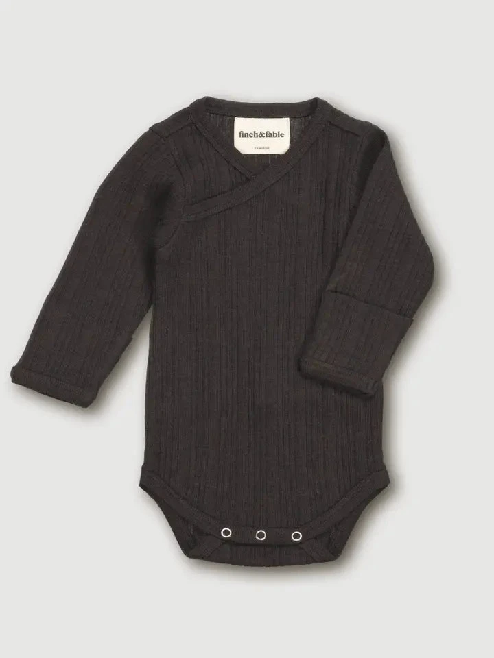 Expertly crafted for your baby’s ultimate comfort, the Wool Rib L/S Bodysuit from Finch & Fable boasts a luxurious blend of wool and bamboo. With an easy to use cross-over design and built-in scratch mittens (sizes 0-3m and 3-6m), your little one will stay warm and stylish all day long.