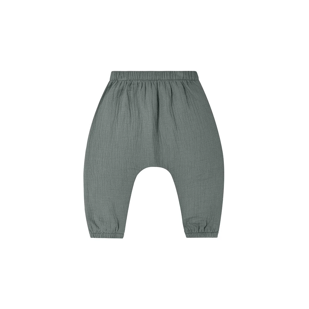 - Elastic waistband and leg openings, dropped crotch for relaxed fit