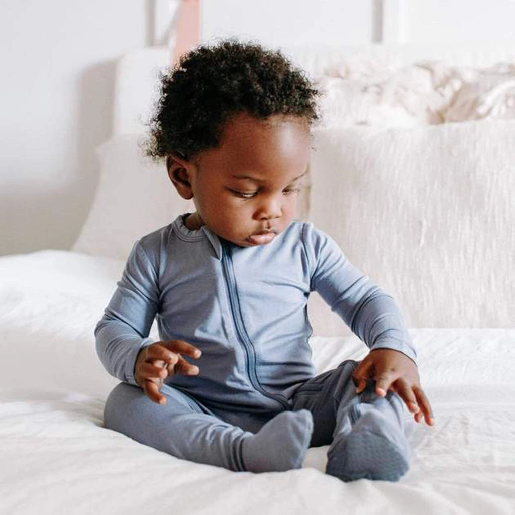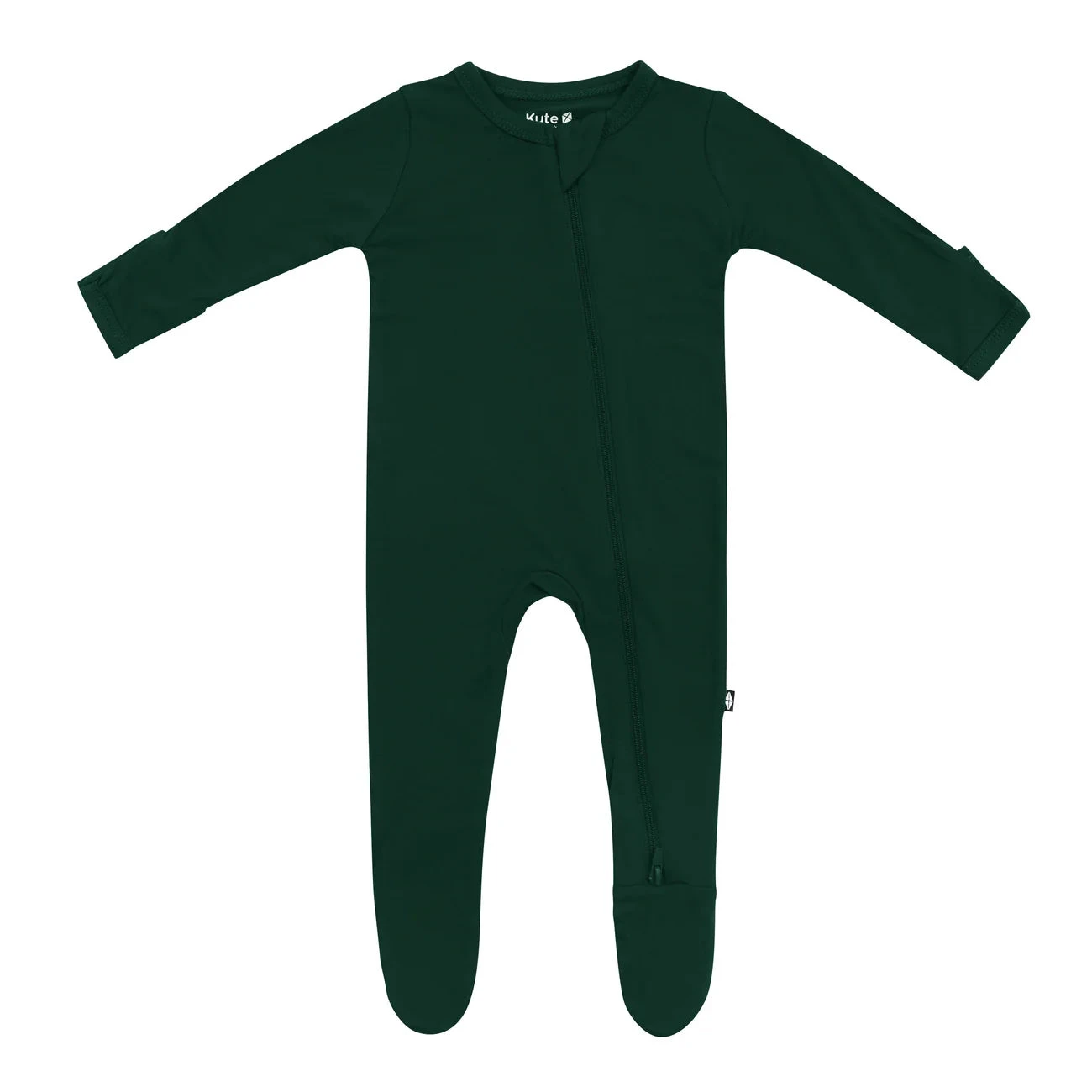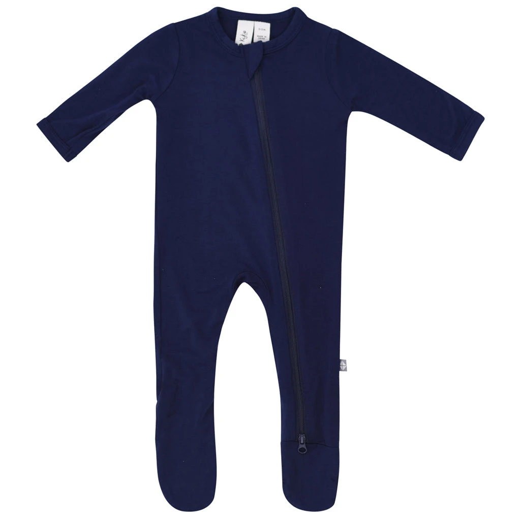 Made from silky smooth bamboo rayon these Zipper Footies by Kyte Baby are stretchy and comfortable. Zipper allows for easy changing.